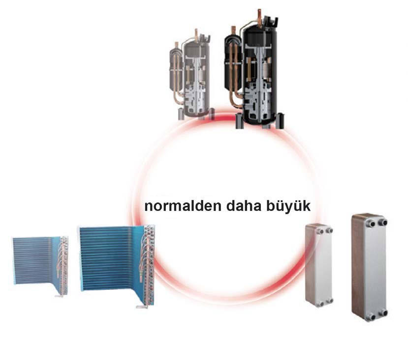 Fieber rakiplerine göre kondanser, plakalı eşanjör yüzey alanını ve kompresörü büyüterek, eksanel fan kanadını daha fazla uzatarak yüksek kapasiteli bir ürün ortaya çıkarmıştır. Bu sayede dış ortam sıcaklığı -7 derece olsa bile ısı pompasında kapasite kaybı yaşanmamaktadır. Aynı zamanda -10 derece dış ortam sıcaklığında bile 80 derece sıcak su temini devam etmektedir.