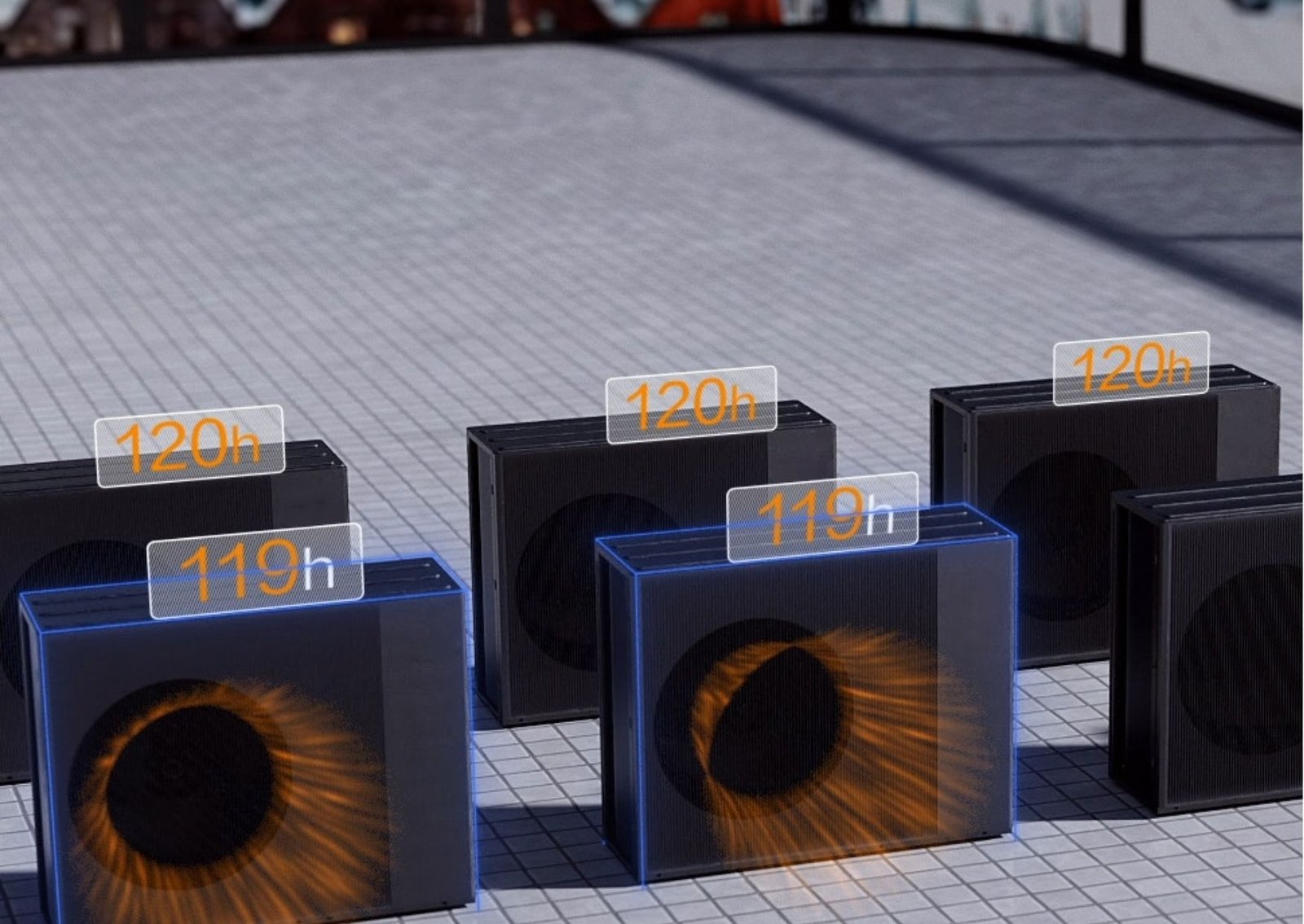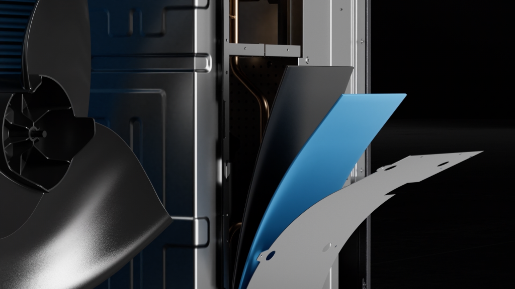 Kompresör ses azaltıcı malzeme ile kaplanmıştır. Geniş açılı tasarıma sahip katlanmış kenarlı fan sayesinde gürültü seviyesi azaltılmaktadır. Rüzgar direncinin azalması için ızgara kapak ve ses yalıtım malzemeleri kullanılmıştır. Böylelikle dış üniteye 3 metre mesafede gürültü seviyesi 35 dB(A) ölçülerek kullanıcı konforu ön planda tutulmuştur.