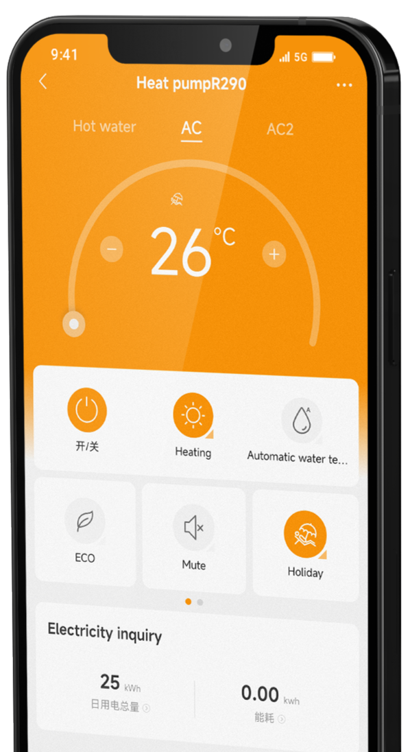 Telefonunuza indireceğiniz bir uygulama sayesinde ısı pompasını uzaktan yönetebilir, ihtiyacınız olan ayarlamaları yapabilir, elektrik tüketimini gözlemleyebilir ve tatil modu dahil birçok fonksiyonu aktif hale getirebilirsiniz. Uzaktan erişim ısı pompası ile birlikte standart bir özellik olarak sunulmaktadır.