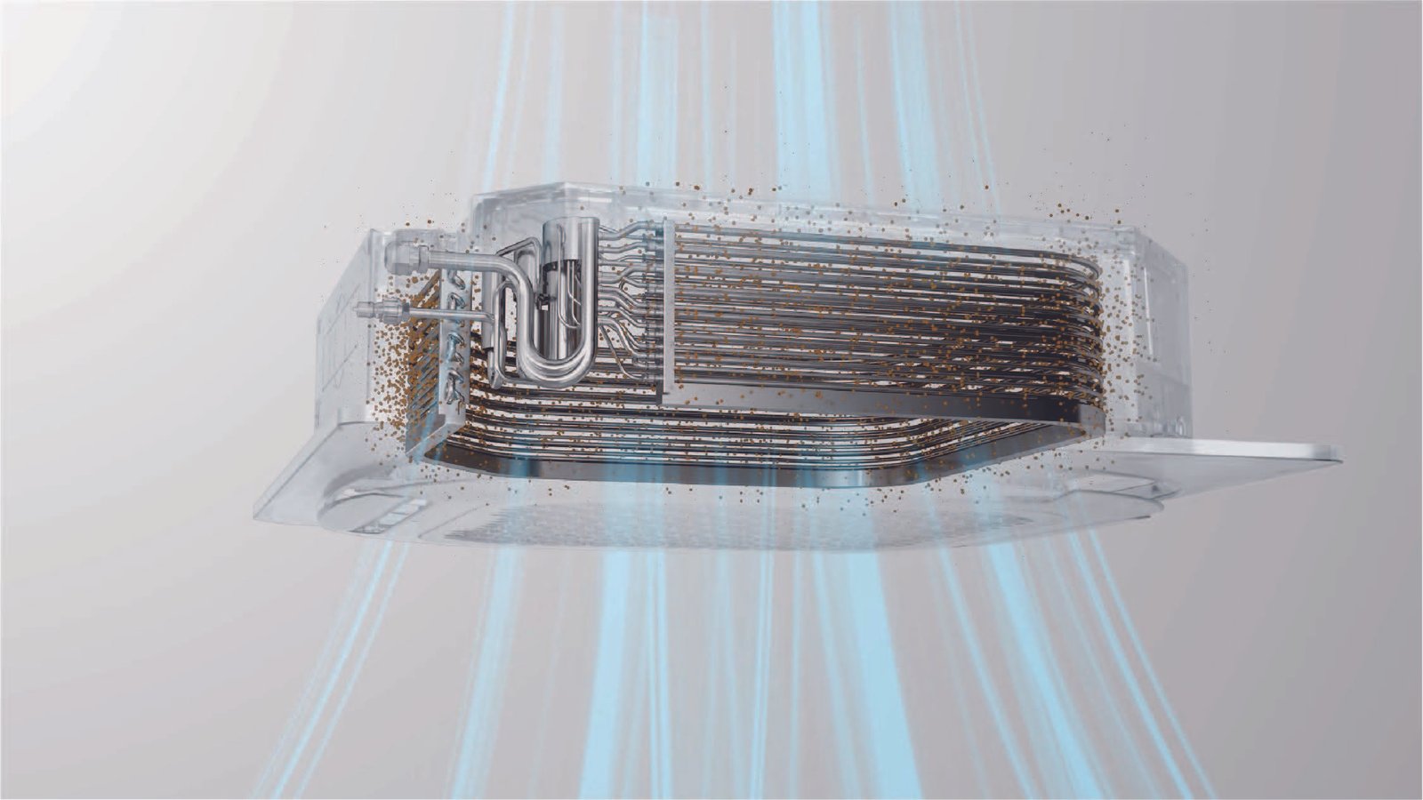 Hem iç hem de dış ünitelerdeki ısı eşanjörlerinin yüzeyi, bakteri oluşumunu etkili bir şekilde önleyen ve cihazların ısıtma verimliliğini artıran benzersiz bir mavi kaplama ile kaplanmıştır. Ayrıca havanın nem, tuz, kimyasallar ve asit bakımından yüksek olduğu kıyı bölgelerindeki zorlu ortamın neden olduğu zararlardan klimayı korur, klimanın performansını artırır ve ömrünü uzatır.
