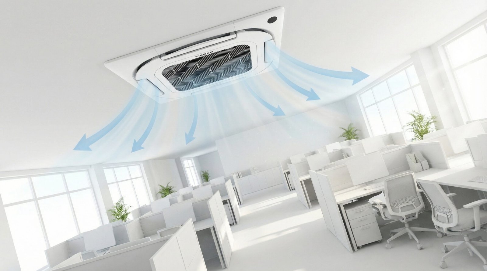 4 yöne uzun hava üfleme mesafesi sayesinde yüksek hacimli alanların iklimlendirmesini sağlar.